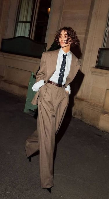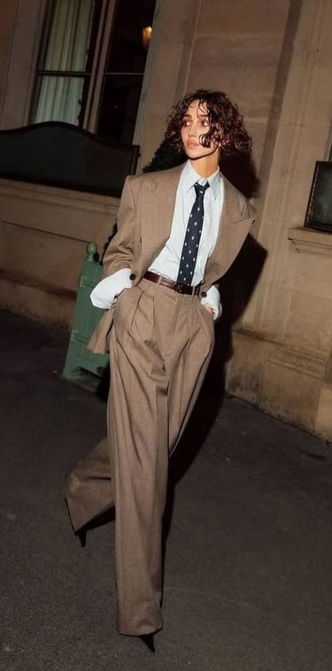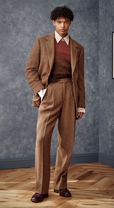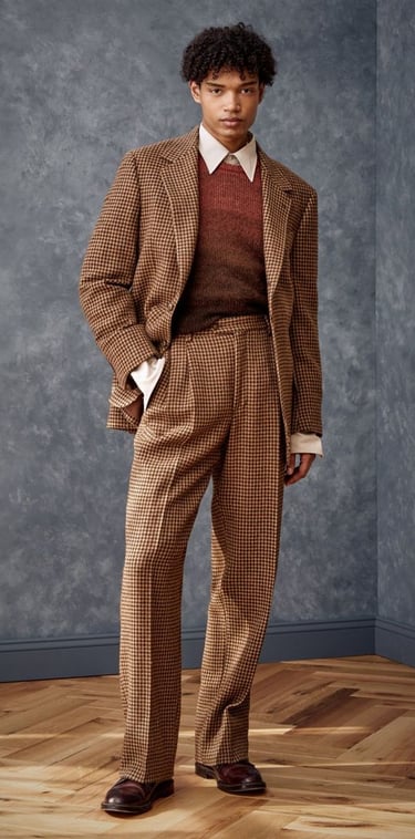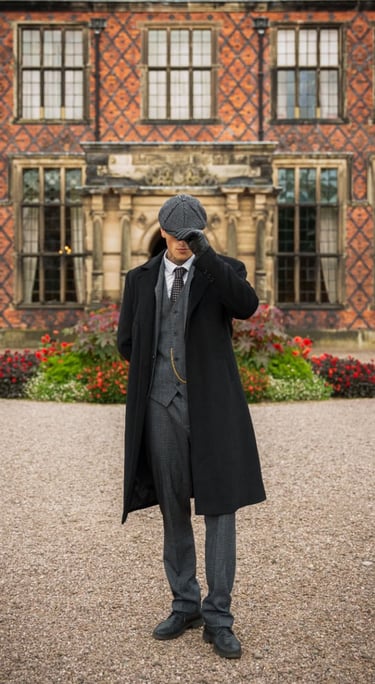 Think high-quality fabrics (velvet, tweed) or the clean, dark silhouette of the Peaky Blinders look (sharp suit, tie, waistcoat).